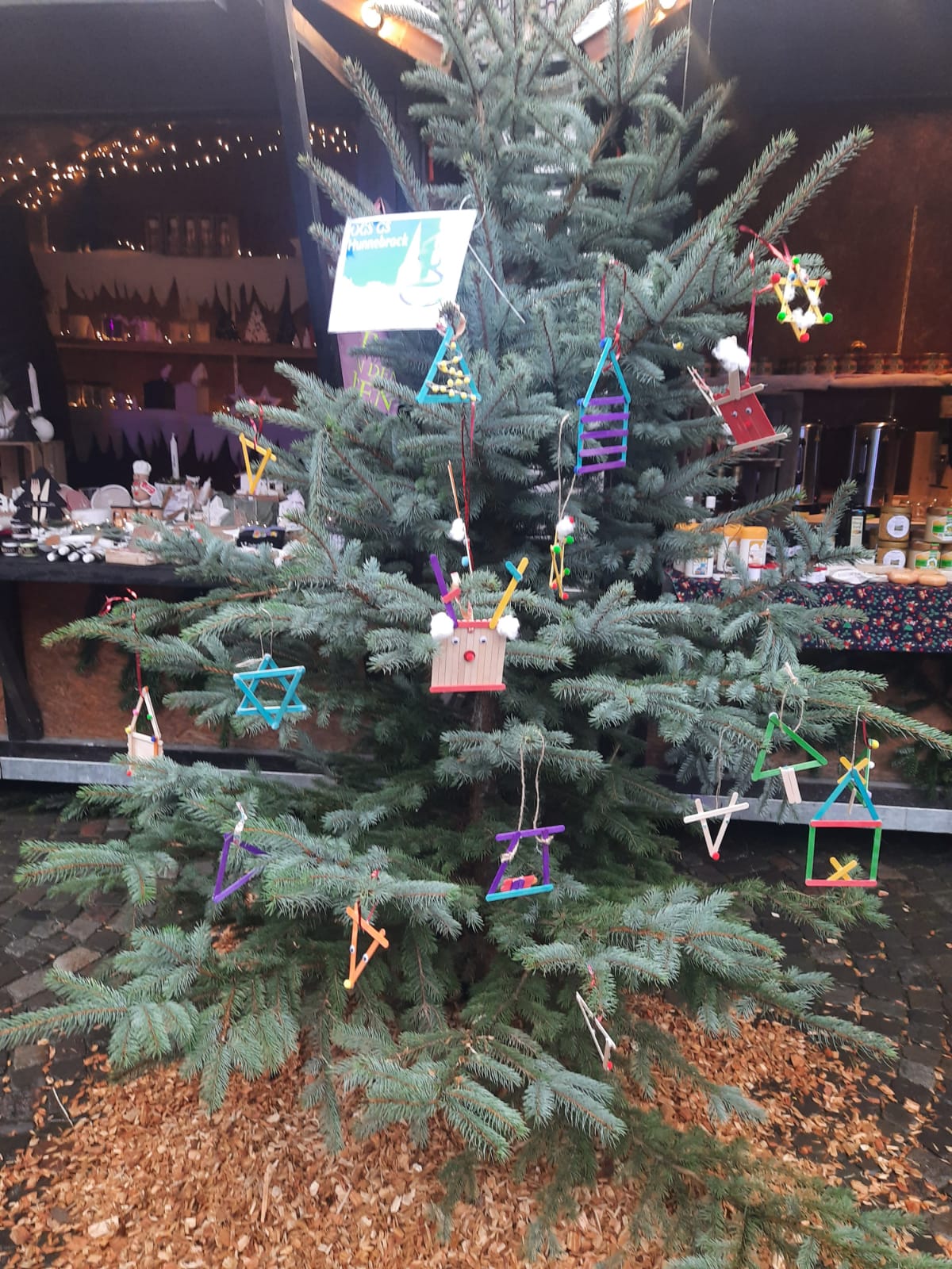 Seit über 10 Jahren basteln wir in der OGS Weihnachtsbaumschmuck und schmücken am Freitag vor dem 1.Advent dort einen Tannenbaum. Nachdem der Nikolaus persönlich unsere geschmückten Tannenbäume bewundert hat, gab es vom Orga-Team zur Belohnung ein Lebkuchenherz!