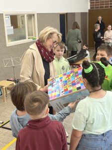 Birgit Keßler-Göhner wurde gebührend in den Ruhestand verabschiedet. 250 Kinder plus Erwachsene sangen ‚Zwanzig Jahre Hunnebrock‘ – ein Gänsehautmoment – was für ein CHOR!!! Zum Abschied gab es noch einen Hocker, der von den Kindern in den vergangenen Wochen gestaltet wurde. Für dich, liebe Frau Keßler-Göhner, heißt es jetzt: ‚Auf das, was da noch kommt‘…..genieße den neuen Lebensabschnitt und komm‘ uns gerne mal besuchen – du bist jederzeit Herzlich Willkommen.🍀🧡