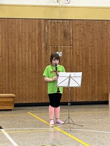 Es wurde gesungen, getanzt, gesteppt, Seil gesprungen, Fußballtricks gezeigt, Handball und Akrobatik gezeigt. Auch einige Instrumente-Kinder zeigten ihr Können – Stücke auf dem Keyboard, der Flöte, der Klarinette, der Geige und der Gitarre zeigten, dass euch Musik einfach Spaß macht.