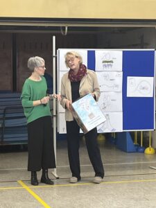 Birgit Keßler-Göhner wurde gebührend in den Ruhestand verabschiedet. 250 Kinder plus Erwachsene sangen ‚Zwanzig Jahre Hunnebrock‘ – ein Gänsehautmoment – was für ein CHOR!!! Zum Abschied gab es noch einen Hocker, der von den Kindern in den vergangenen Wochen gestaltet wurde. Für dich, liebe Frau Keßler-Göhner, heißt es jetzt: ‚Auf das, was da noch kommt‘…..genieße den neuen Lebensabschnitt und komm‘ uns gerne mal besuchen – du bist jederzeit Herzlich Willkommen.🍀🧡