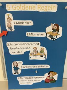 Durch viele Kennenlernspiele hatten die Kinder nicht nur viel Spaß, sondern lernten auch, wie wichtig Zuhören, Rücksicht und Teamarbeit sind. Ein weiterer wichtiger Bestandteil waren die fünf goldenen Regeln. Sie wurden besprochen und in sind Teil des Rads, damit es „rund läuft“ im Alltag miteinander.