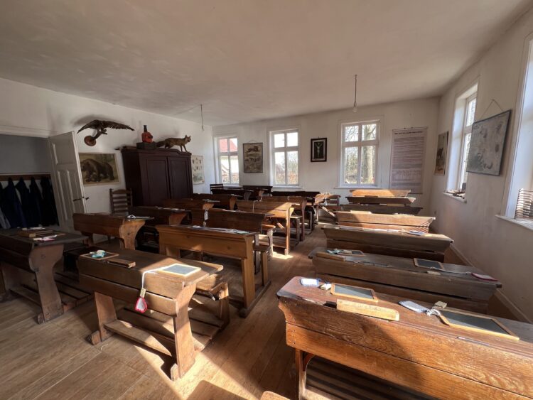 Ein besonderes Highlight war der Besuch der Museumsschule Hiddenhausen. In einem historischen Klassenzimmer erlebten die Kinder am eigenen Leib, wie streng es früher zuging. „Rücken gerade, Hände auf den Tisch!“ – das Schreiben auf echten Schiefertafeln und das Kennenlernen der alten Sütterlinschrift sorgten für staunende Gesichter und viel Gesprächsstoff auf der Rückfahrt.